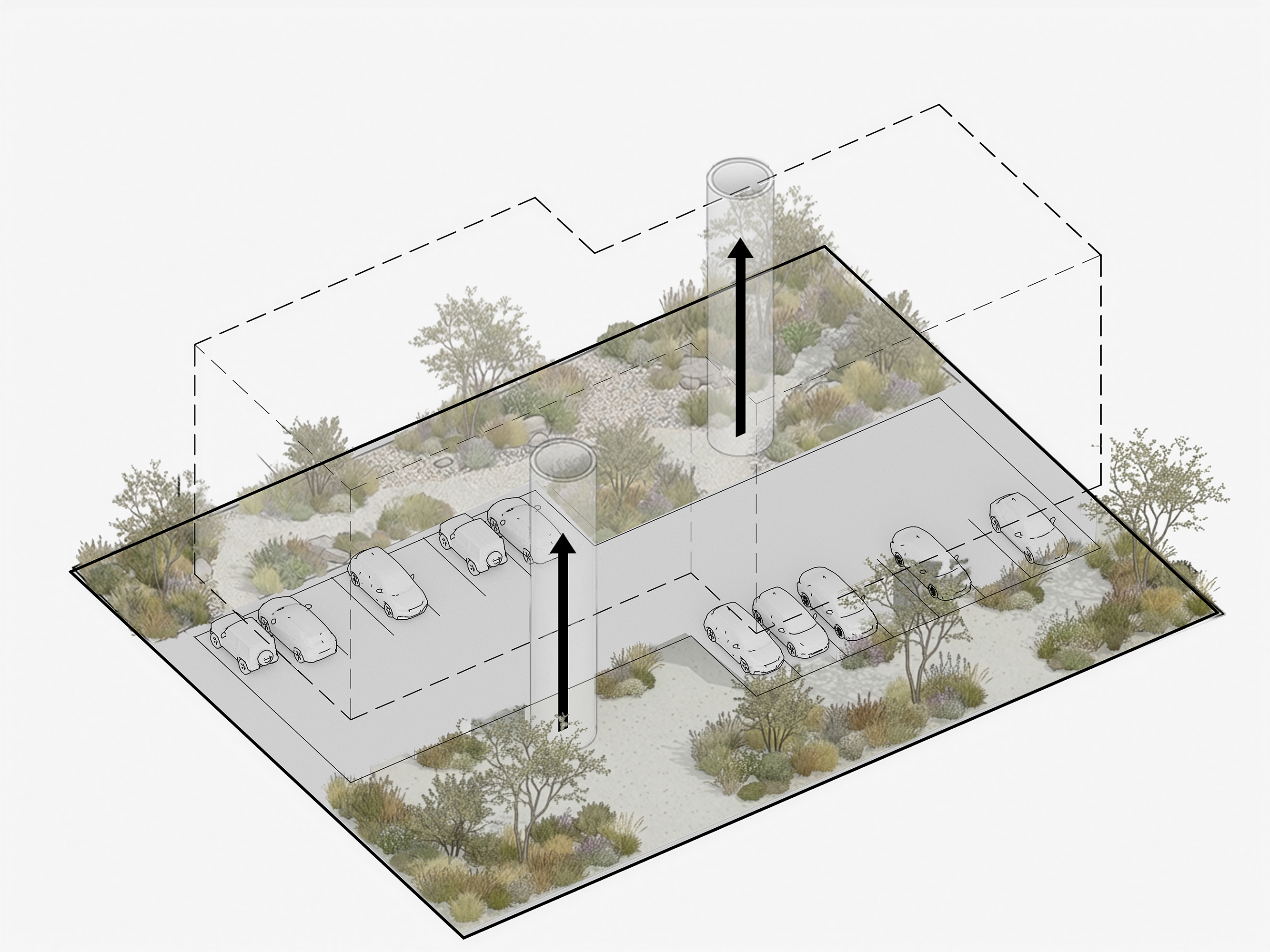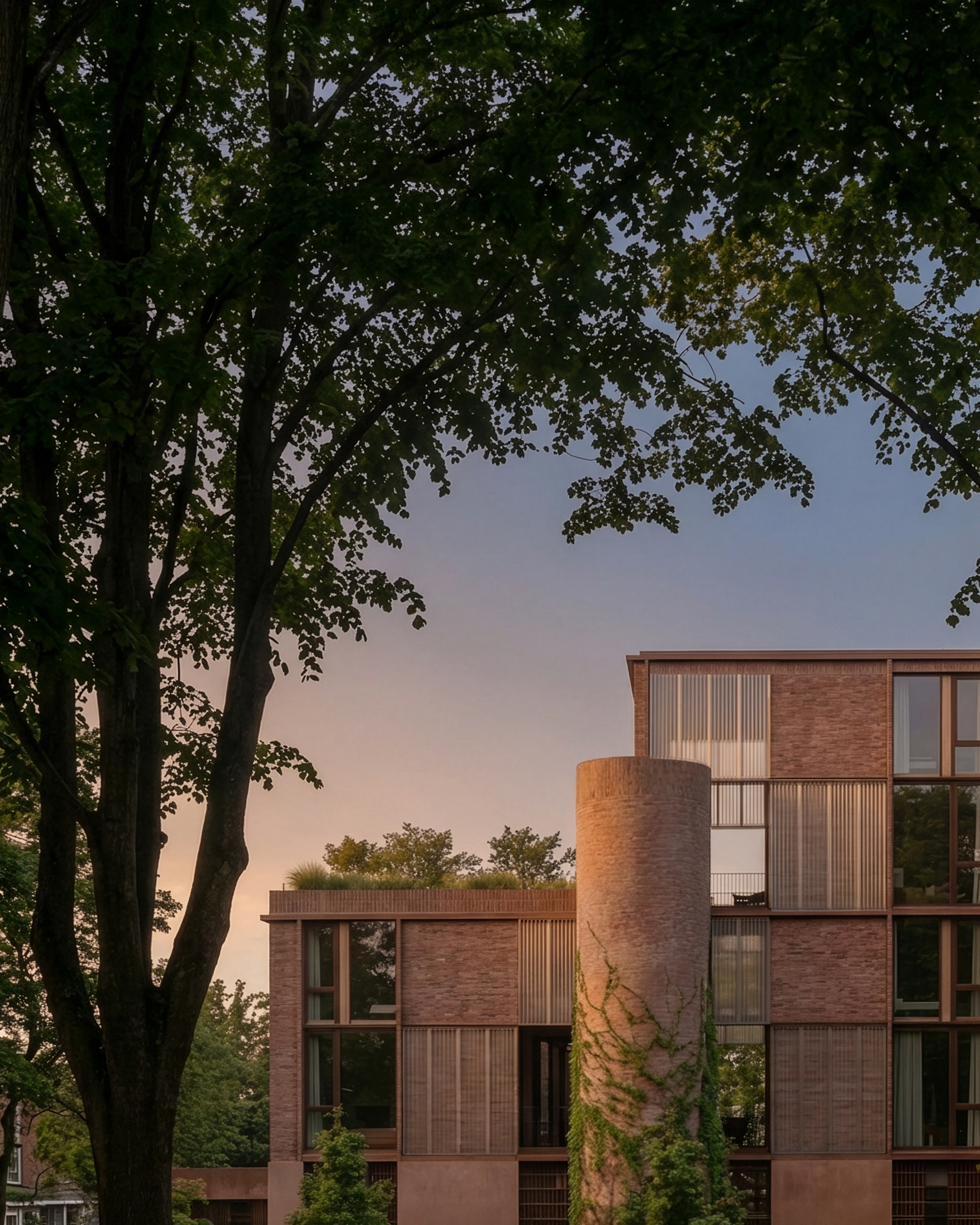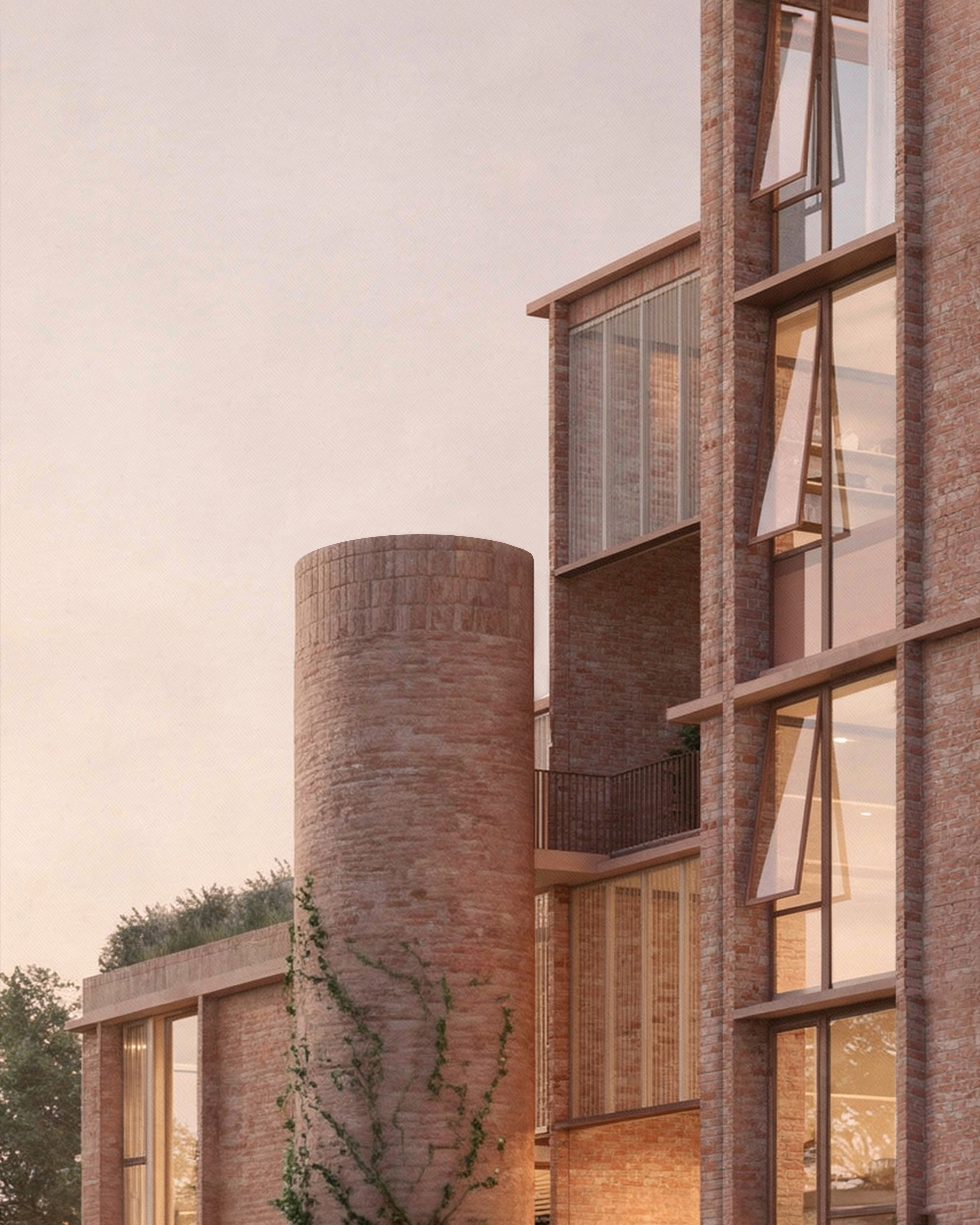 The gardens become an extension of each apartment. Parking is neatly tucked under the building, with the circular stair structures placed intentionally in the gardens to encourage use. The building is shaped to create space for gardens which bring light and air deep into the site while softening the space between the block and its neighbours. The shared landscape reinforces the project’s social intent, encouraging casual encounters whilst the stair cores maintain a clear sense of retreat into each apartment.
